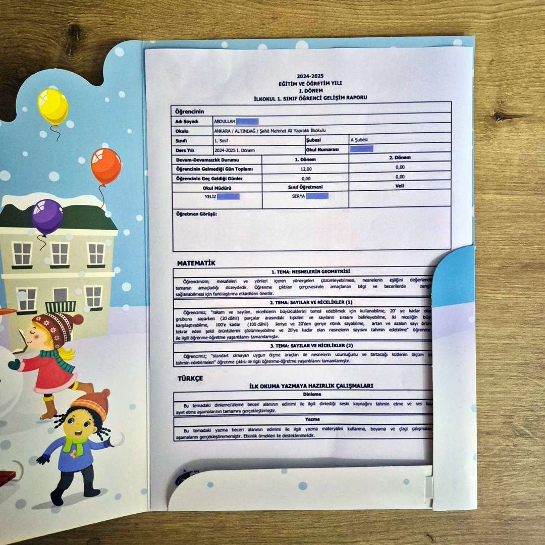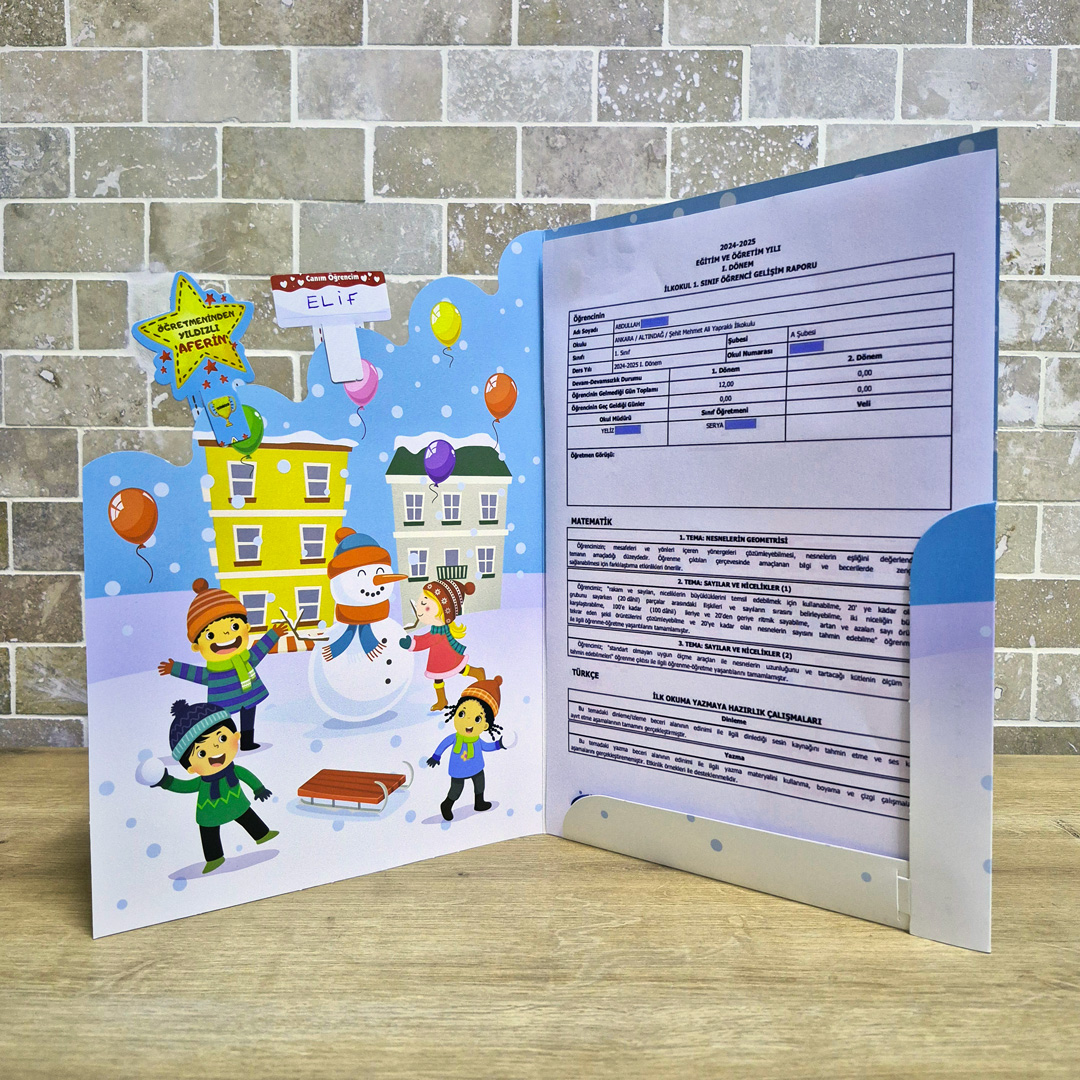 Cepli Kar Temalı Gelişim Raporu Karne Kılıfı